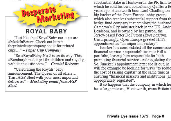 No, it was transparently a paid-for stunt to draw positive publicity to the firm in time for International Women's Day, the high class equivalent of a British paper cup manufacturer attempting to cash in on a #RoyalBaby hashtag with a marketing tweet.